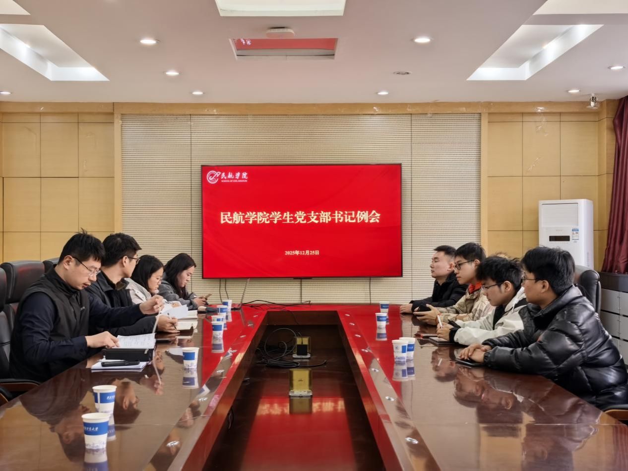12月25日上午,民航学院召开了本月学生党支部书记工作例会,会议传达了学校党委常委会“第一议题”,集体学习了本月学习主题,围绕本月支部重点工作进行了汇报交流。学院组织员、学工主管、学生支部书记、师生融合党支部代表参加会议,会议由学院党委副书记张龙主持。