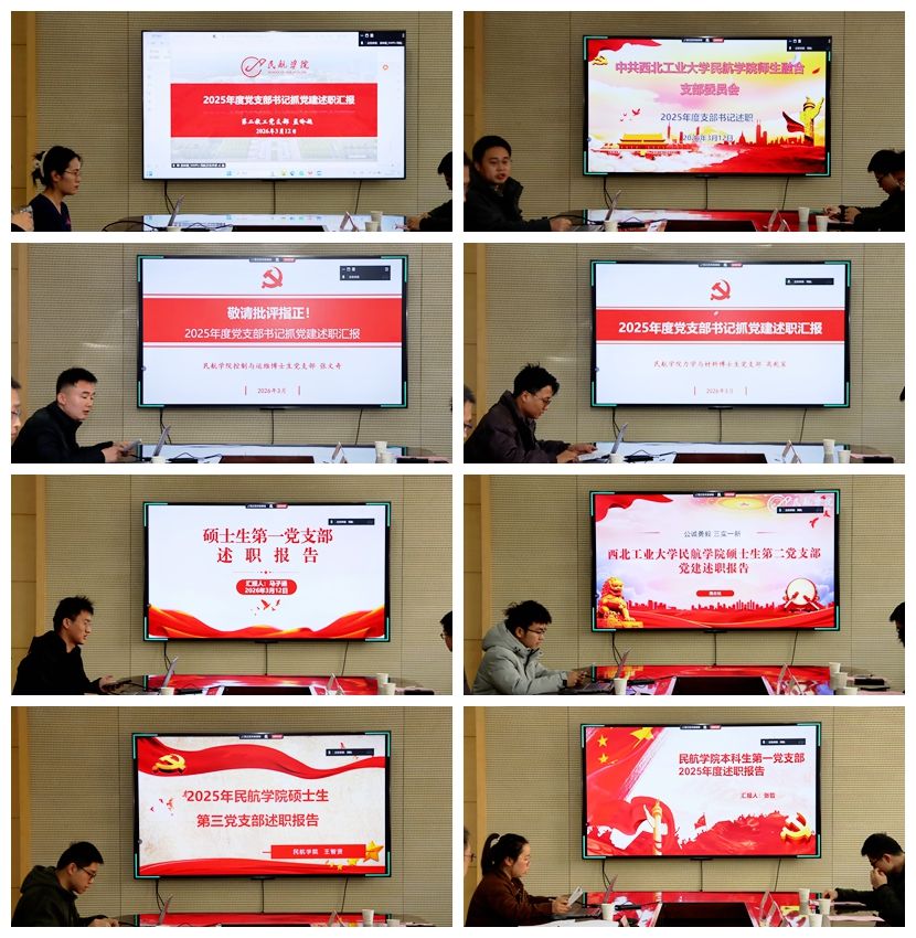 2026年3月12日上午,民航学院党委在毅字楼218会议室组织召开2025年度教职工和学生党支部书记抓党建述职评议考核会议。学院党委领导班子成员、党委委员、教职工和学生党员代表参加会议,会议由学院党委副书记张龙主持。